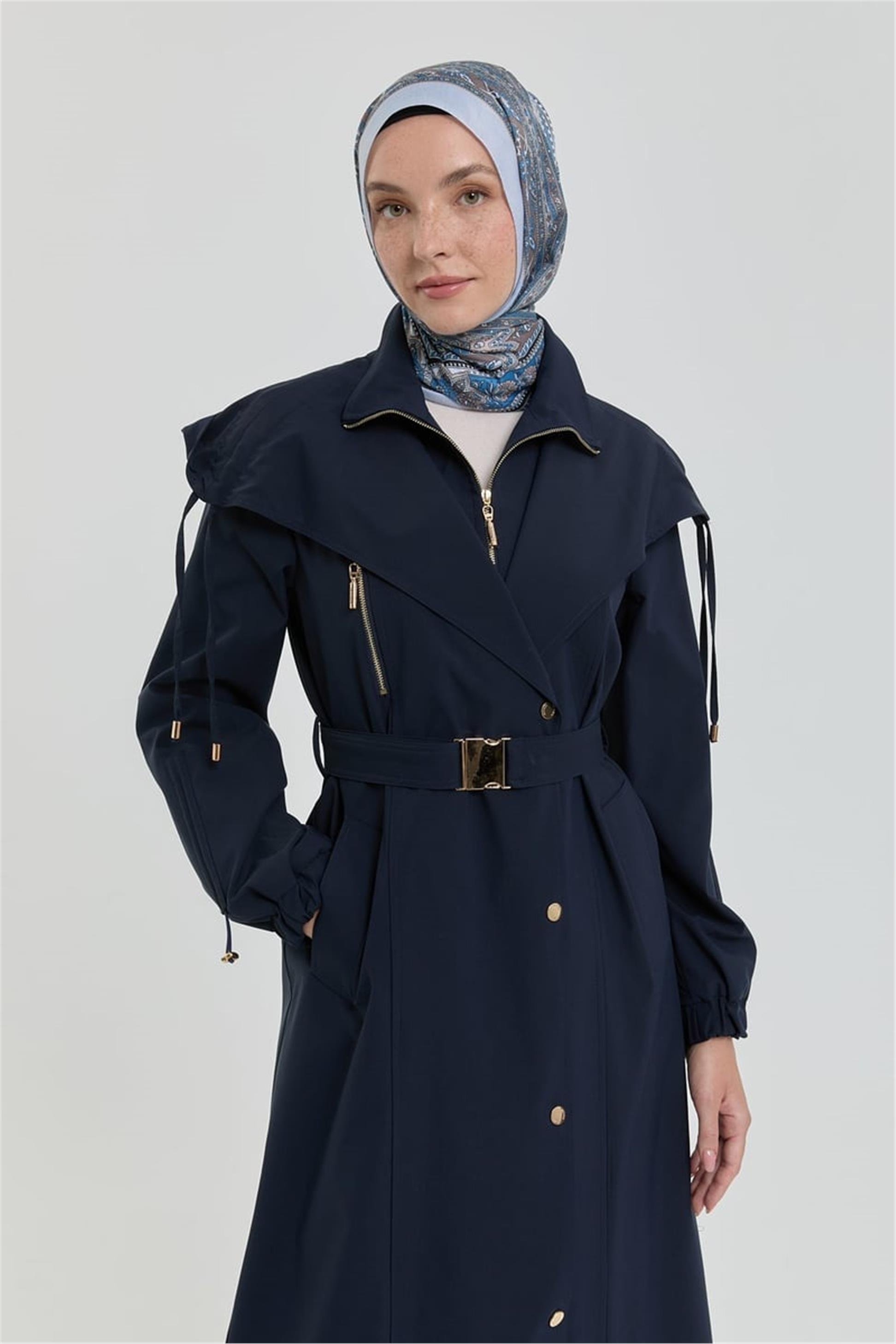 Aksesuar Detaylı Kuşaklı Kap Lacivert