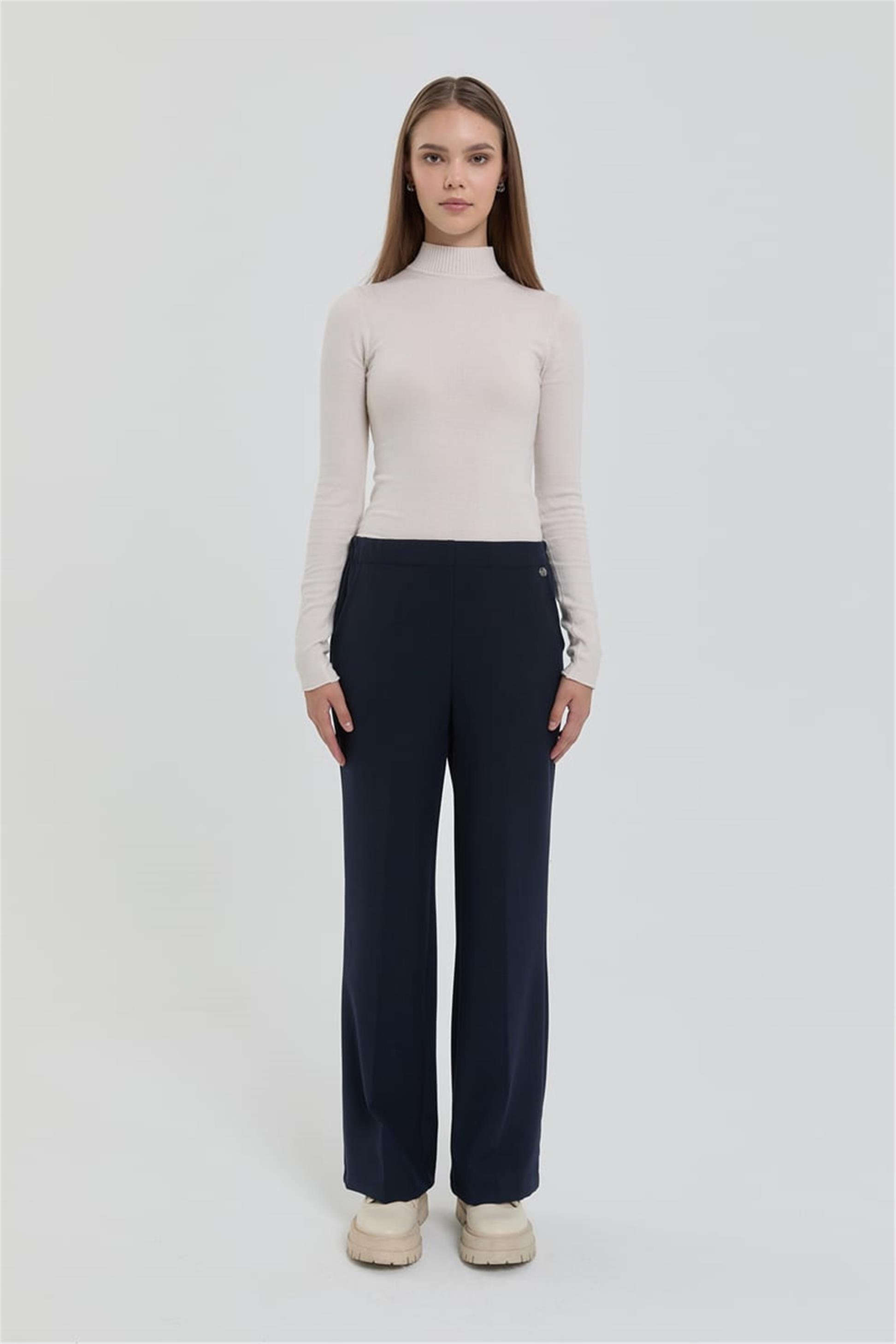Arka Beli Lastikli Ütü İzli Boru Paça Pantolon Lacivert