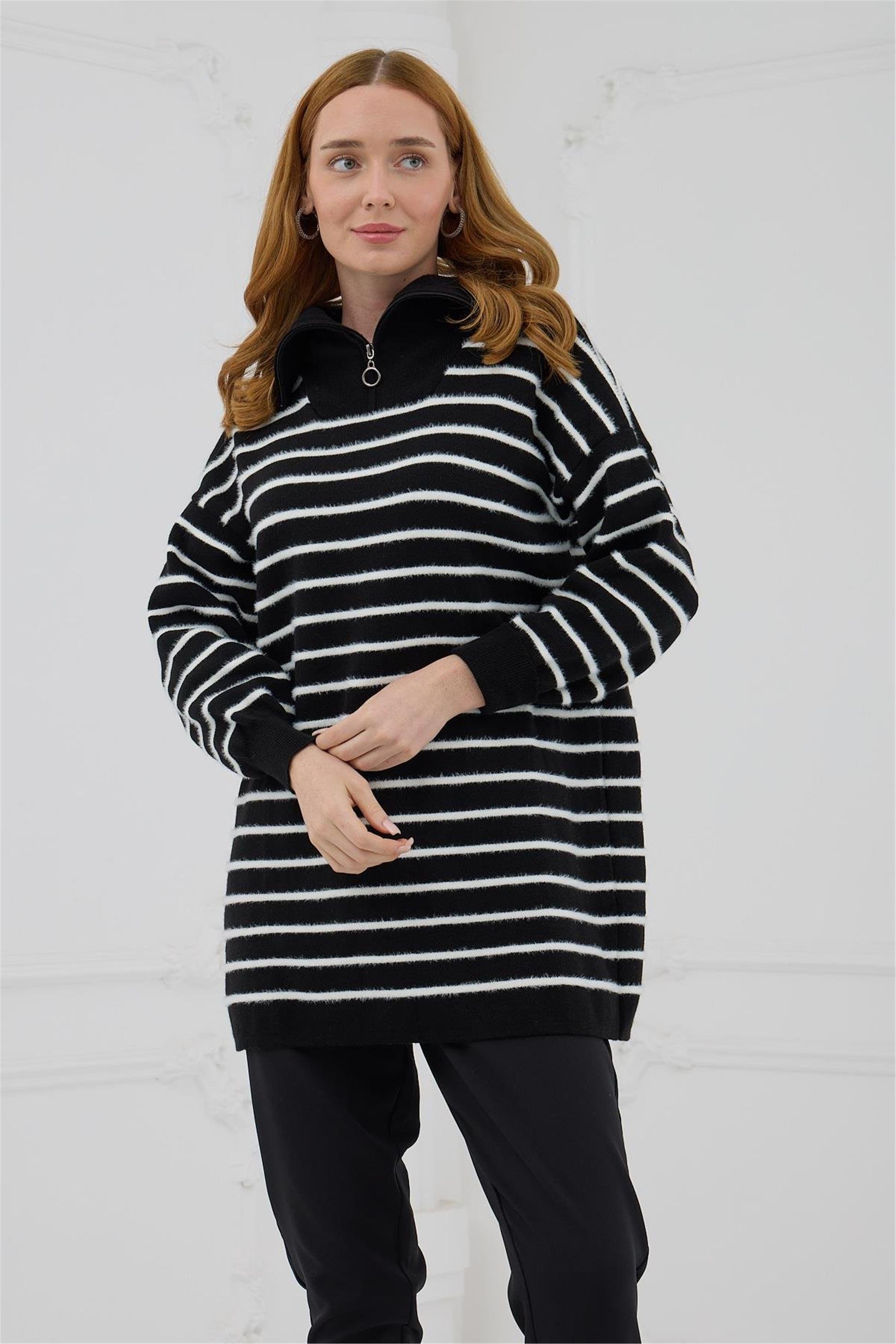 Balıkçı Yaka Çizgili Triko Kazak Siyah - 25KMB3033