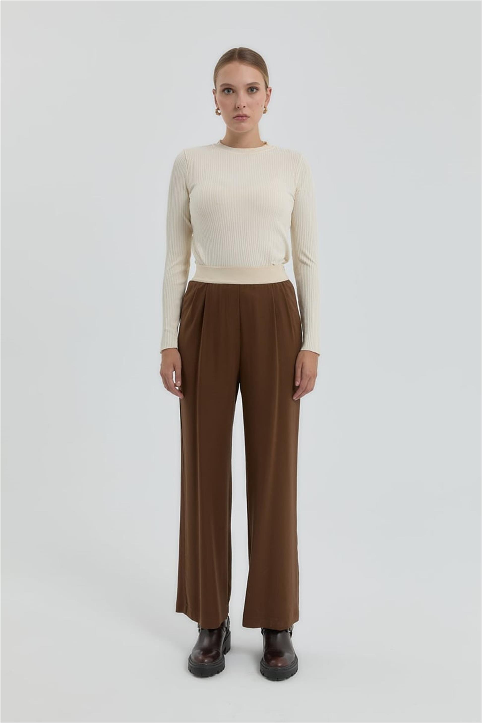 Beli Lastikli Modal Pileli Pantolon Açık Kahve