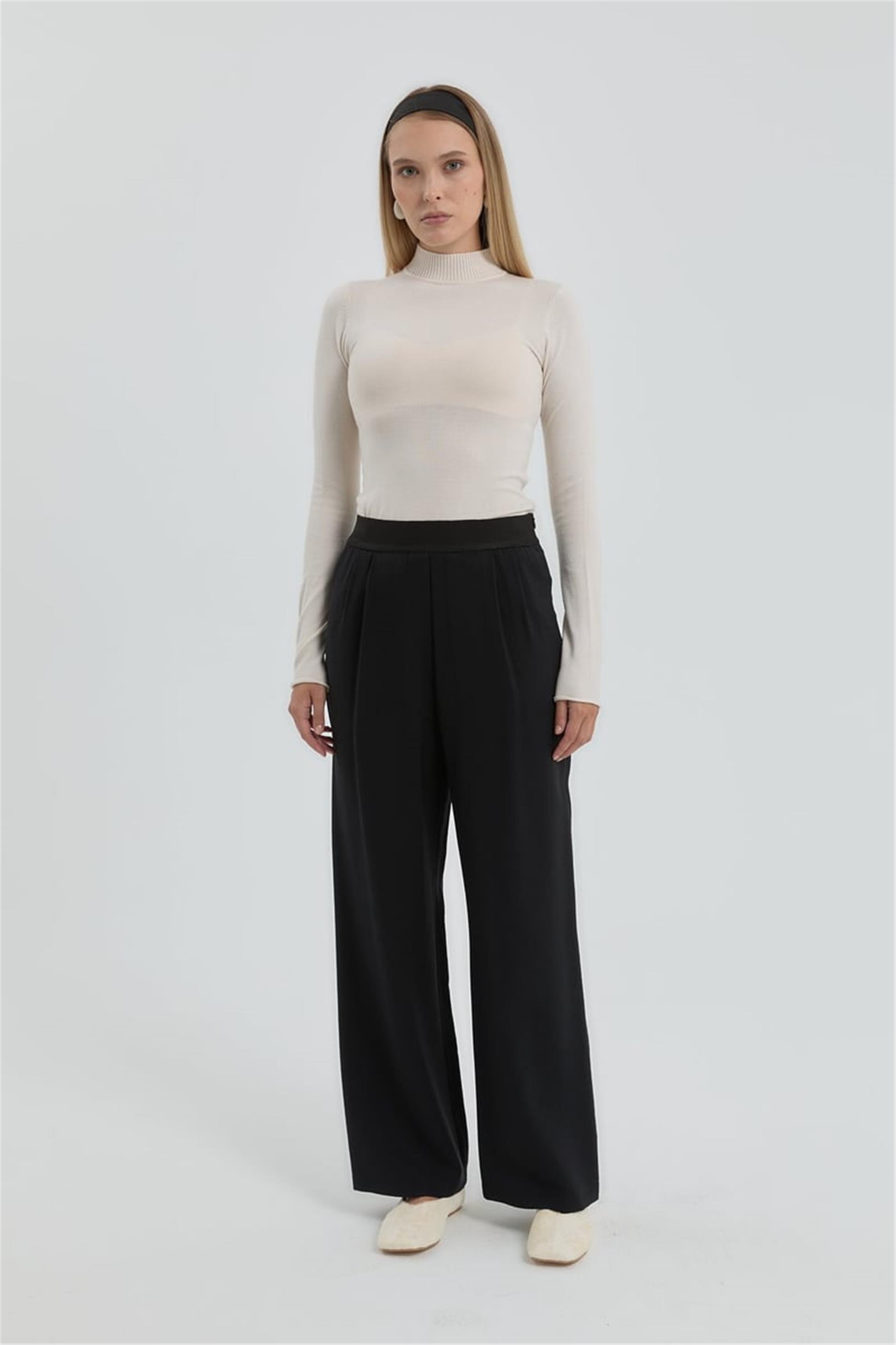 Beli Lastikli Modal Pileli Pantolon Siyah