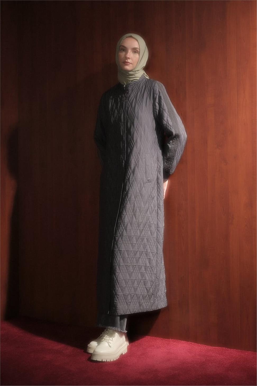 Büyük Beden İnce Kapitone Pardösü Antrasit - 252PR4214NH.1