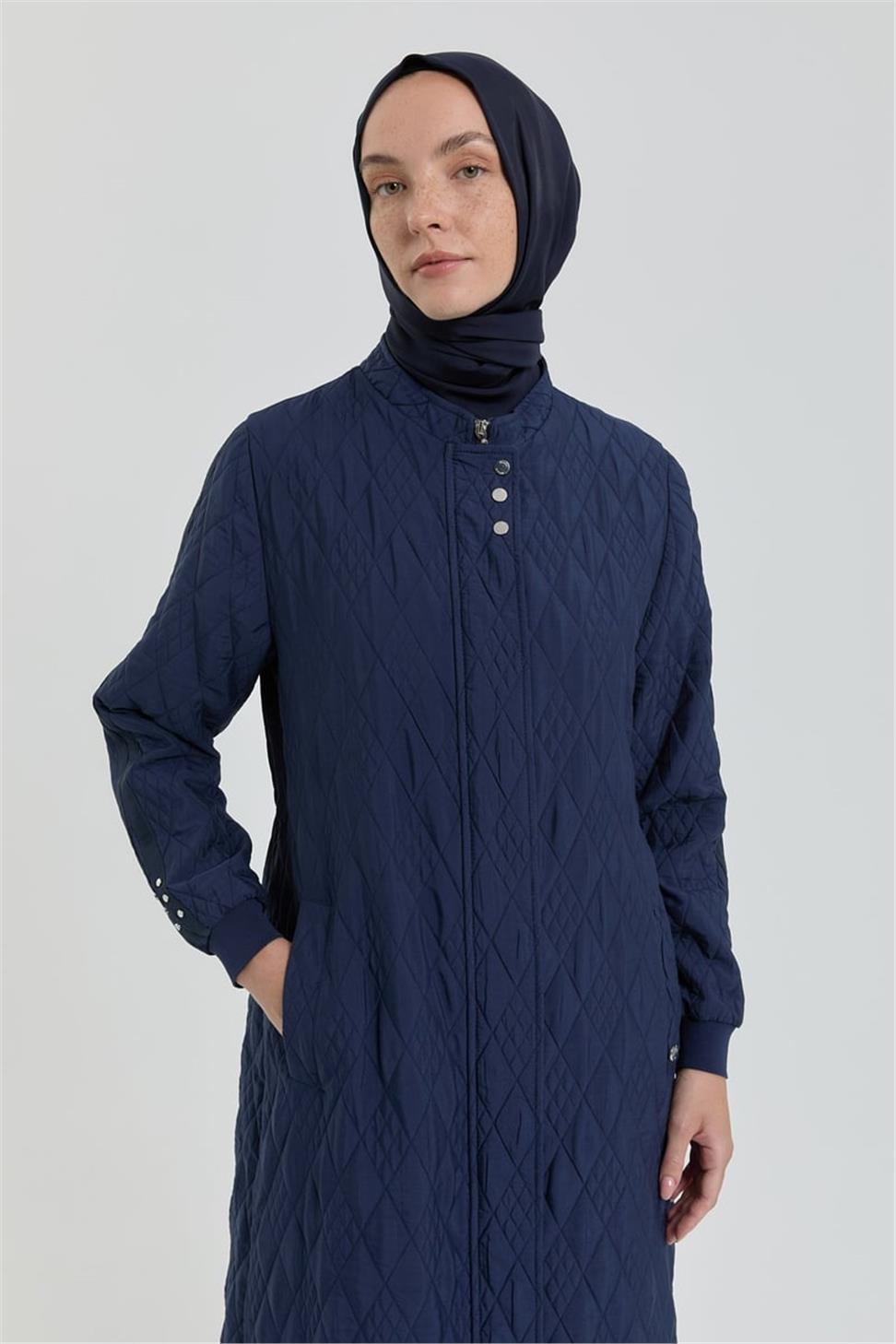 Büyük Beden İnce Kapitone Pardösü Lacivert - 252PR4214NH.1