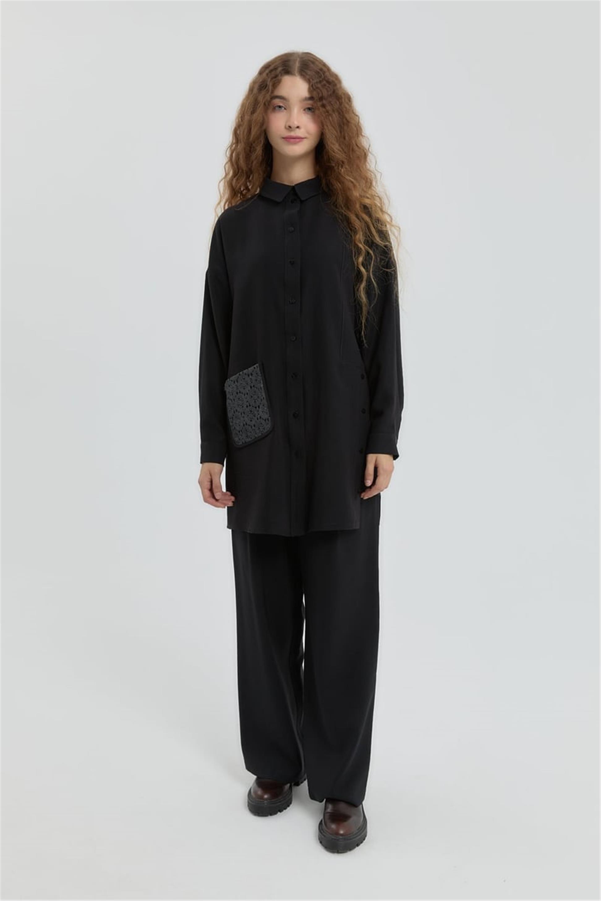 Cep Detaylı Modal Tunik Siyah