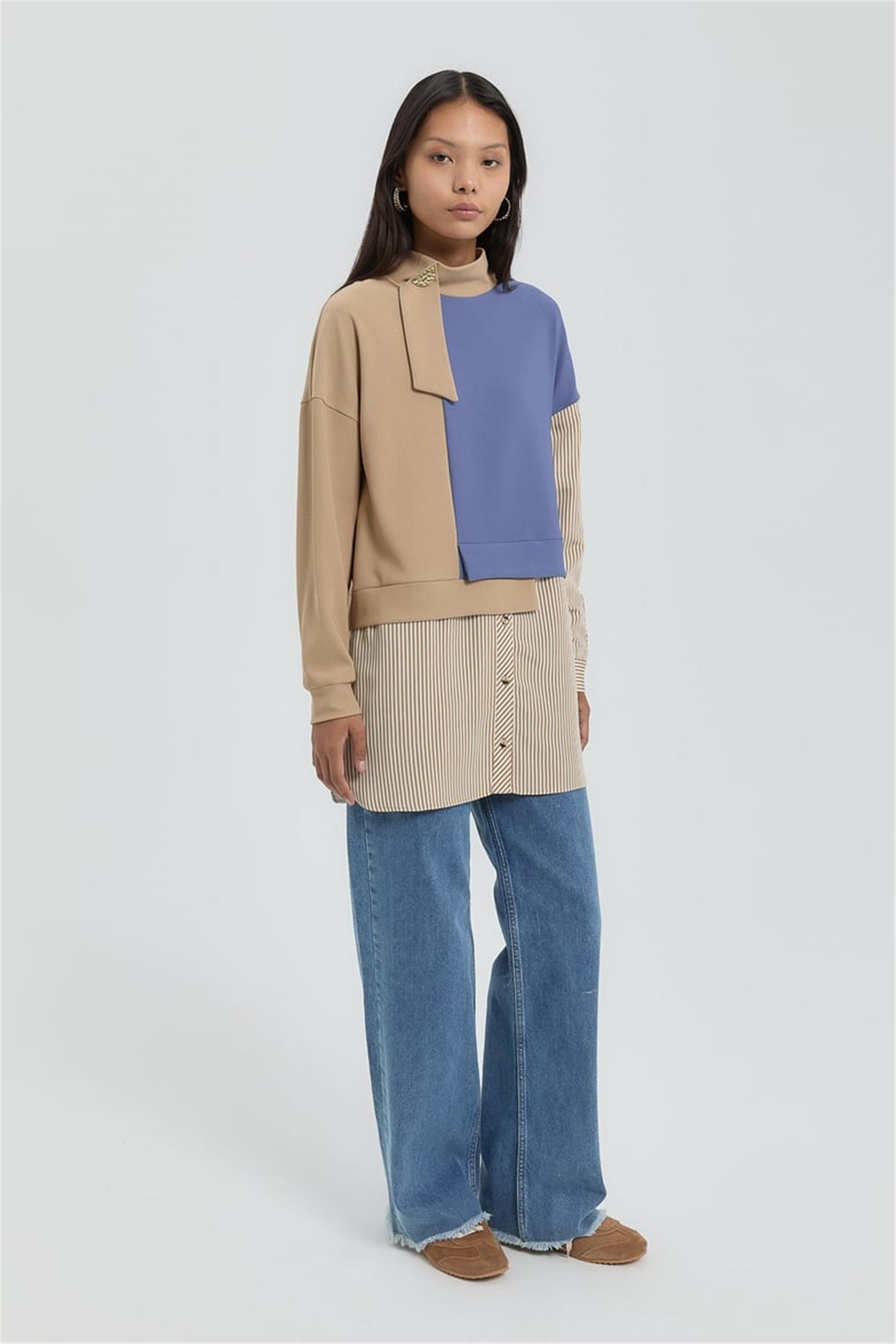 Çizgi Garnili Örme Tunik Camel