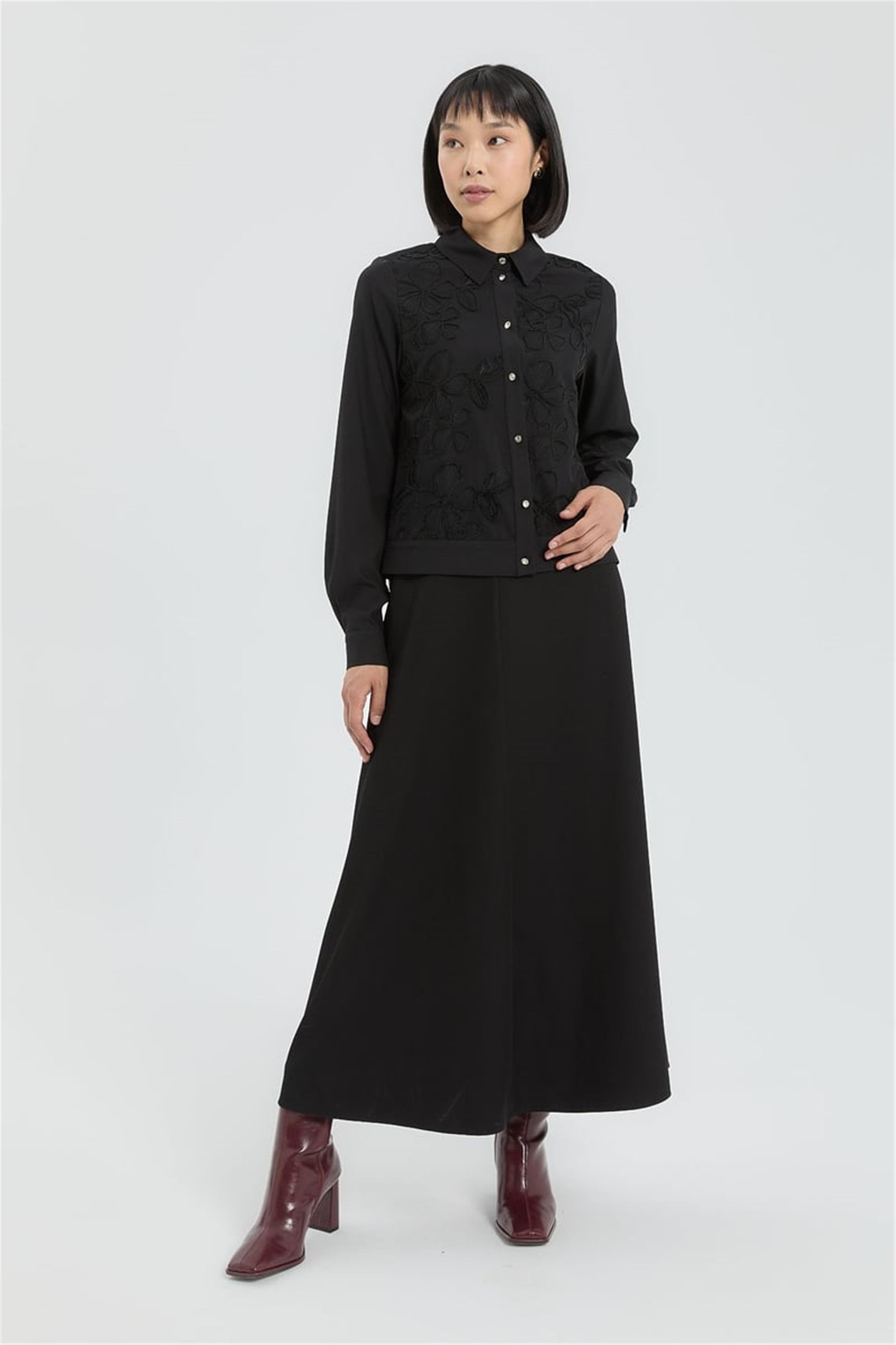 Dantel Detaylı Etek Ceket Takım Siyah