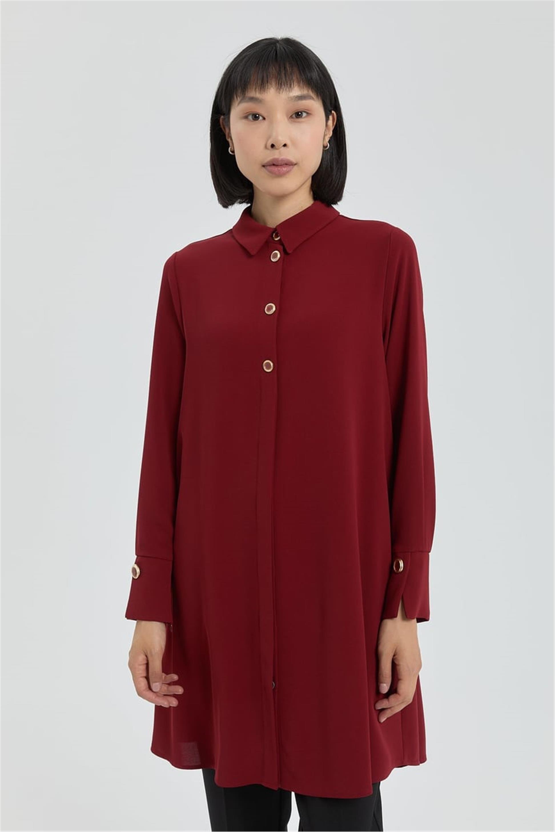 Düğme Detaylı Gömlek Yaka Tunik Bordo