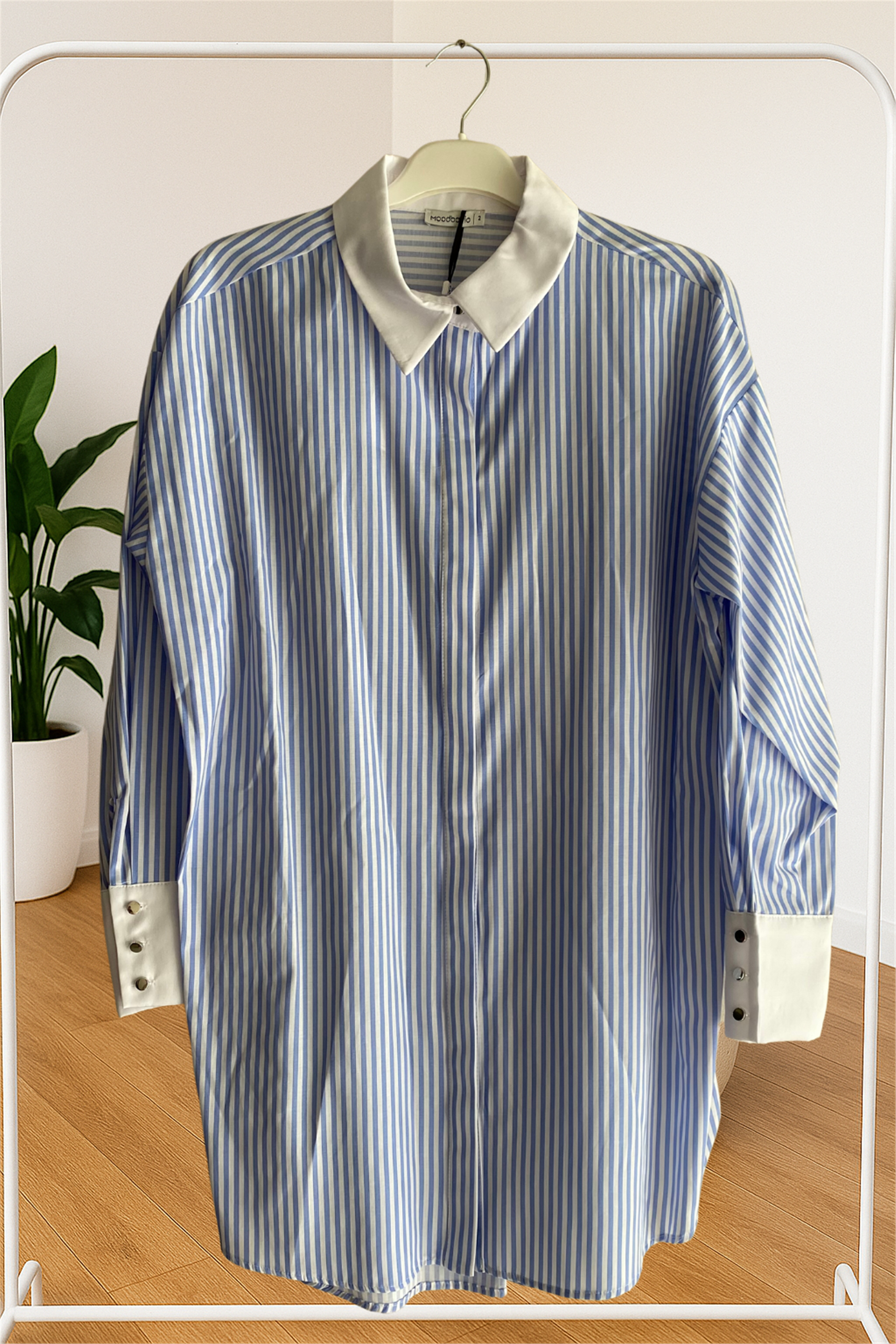 Etiket Detaylı Çizgili Gömlek Mavi - 25KMB11285