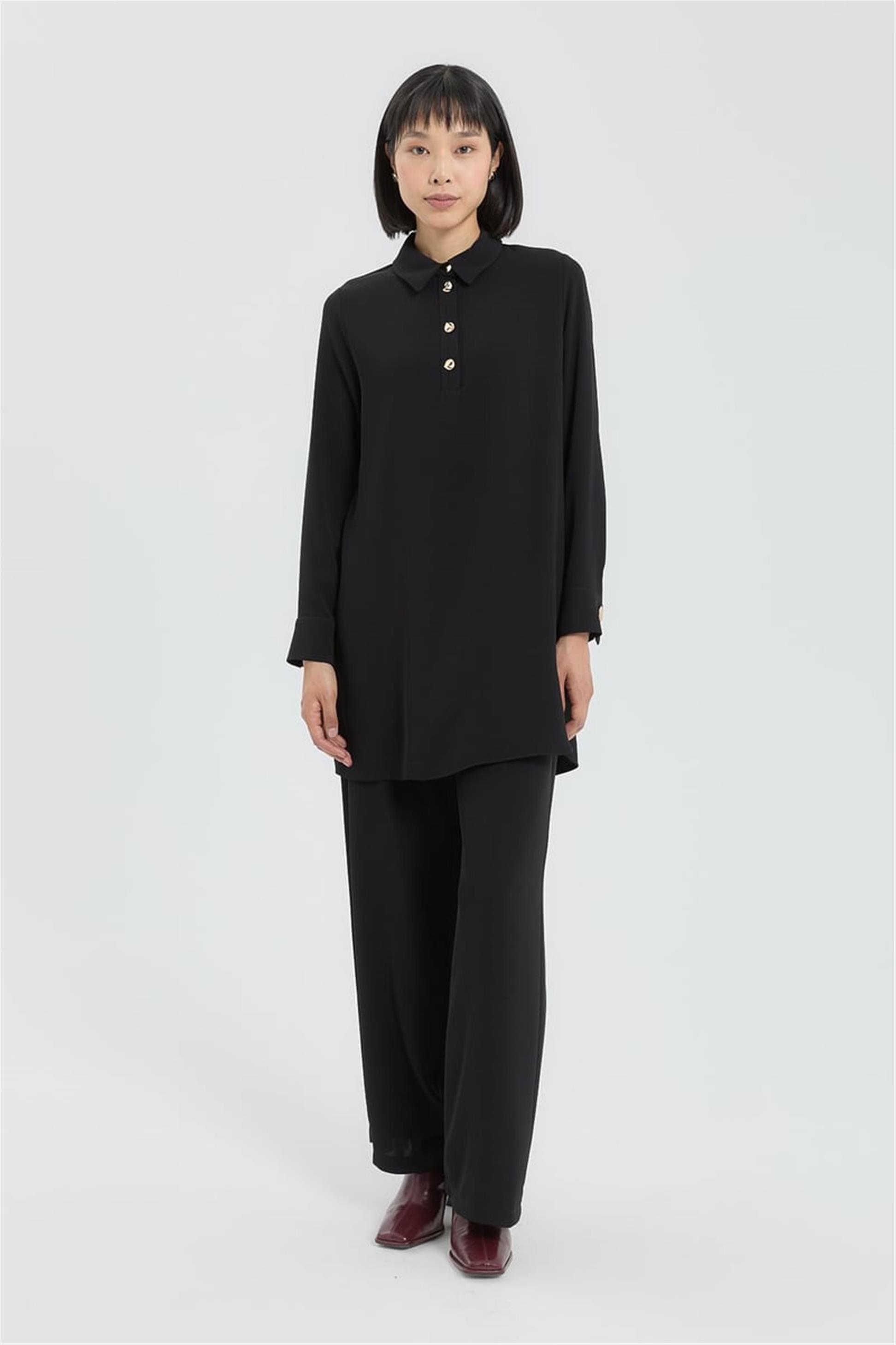 Gold Düğmeli Pantolon Tunik Takım Siyah