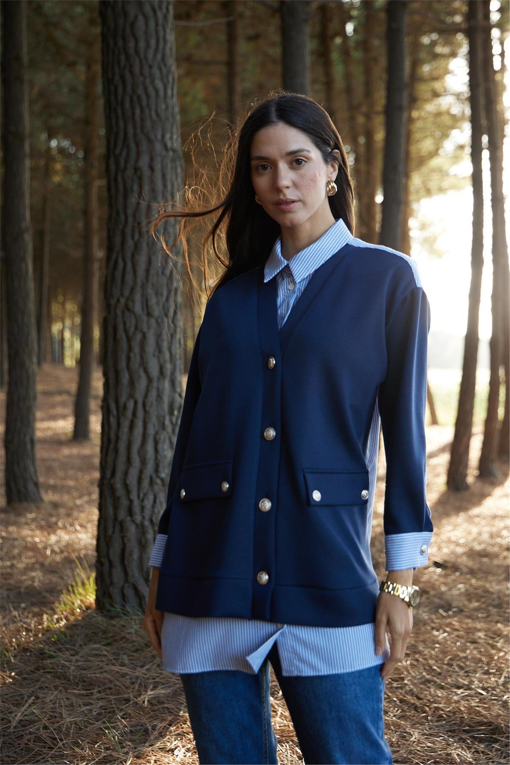 Hırka Görünümlü Düğmeli Tunik Mavi - 25KMB27190