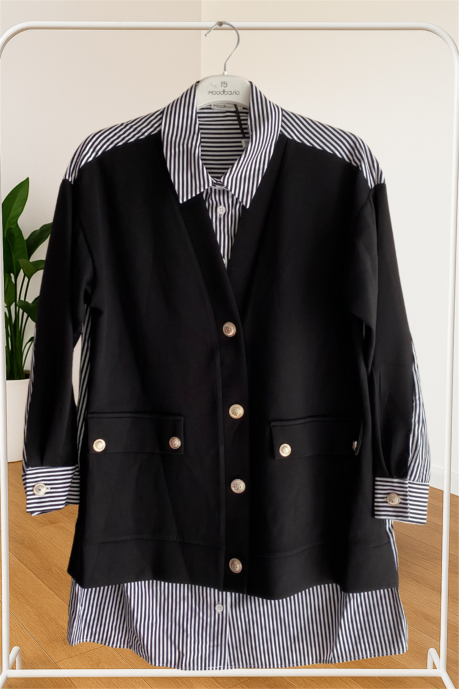 Hırka Görünümlü Düğmeli Tunik Siyah - 25KMB27190