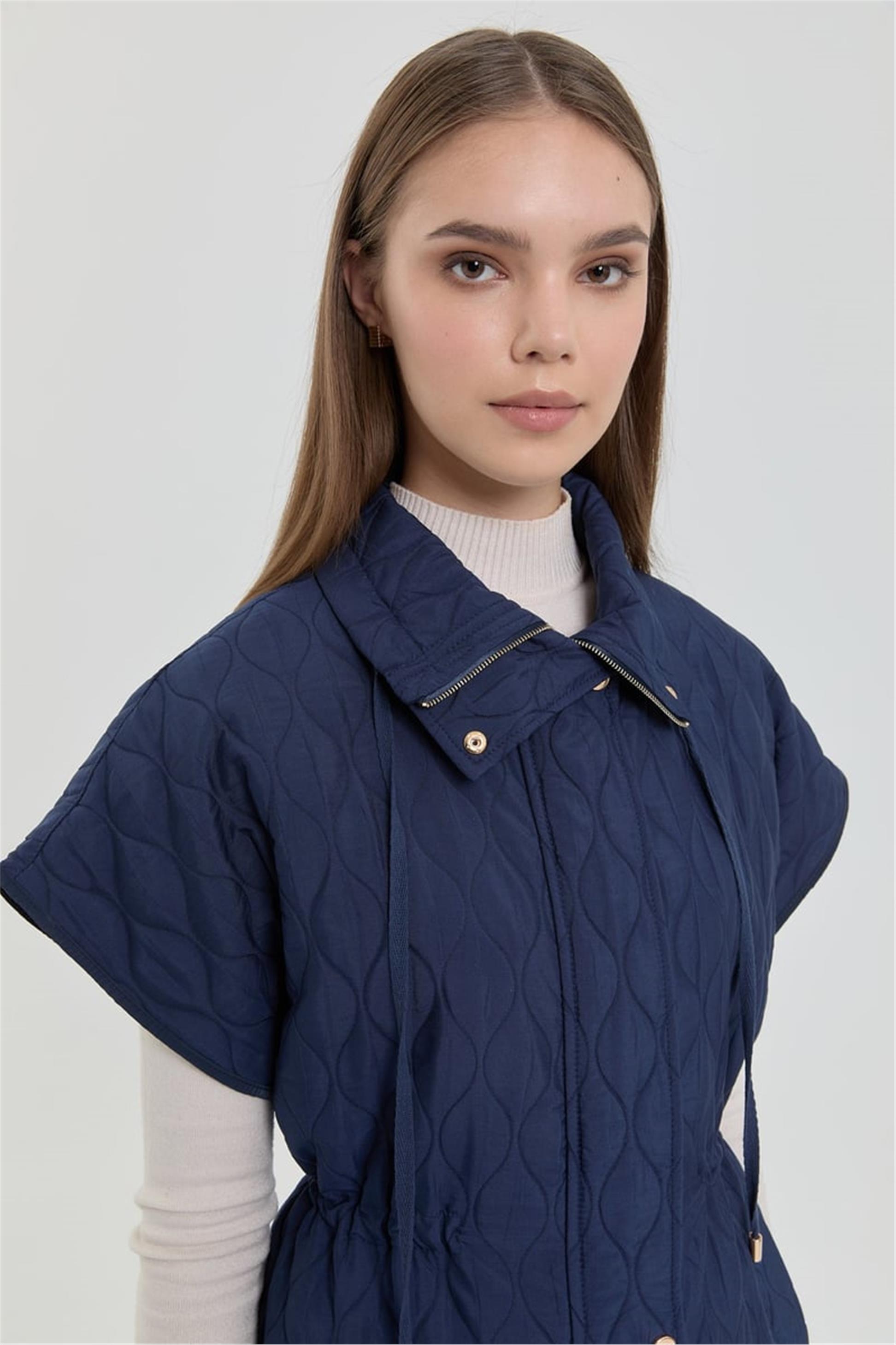 İnce Kapitone Beli Büzgülü Yelek Lacivert