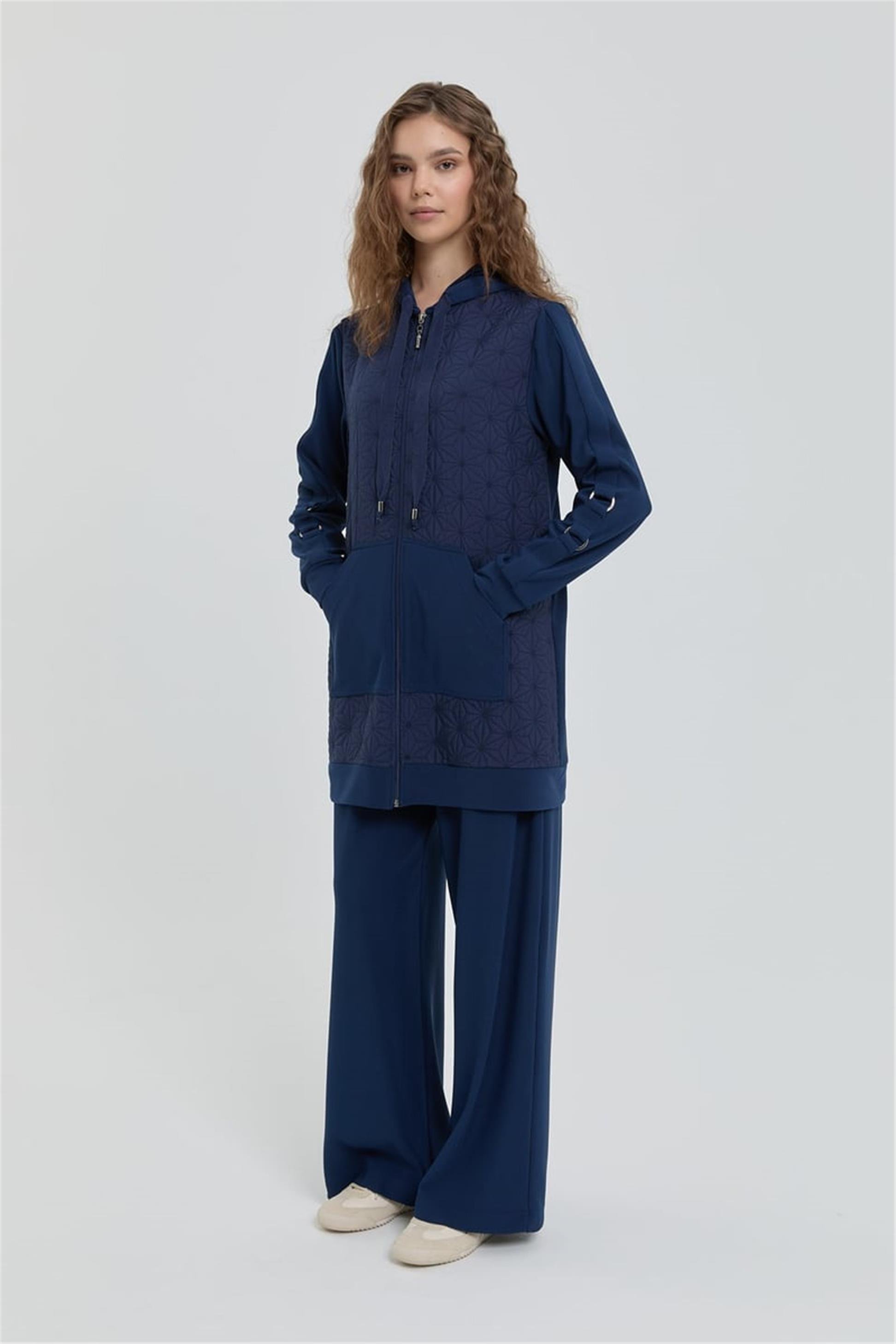 İnce Kapitone Garnili Örme Pantolon Tunik Takım Lacivert