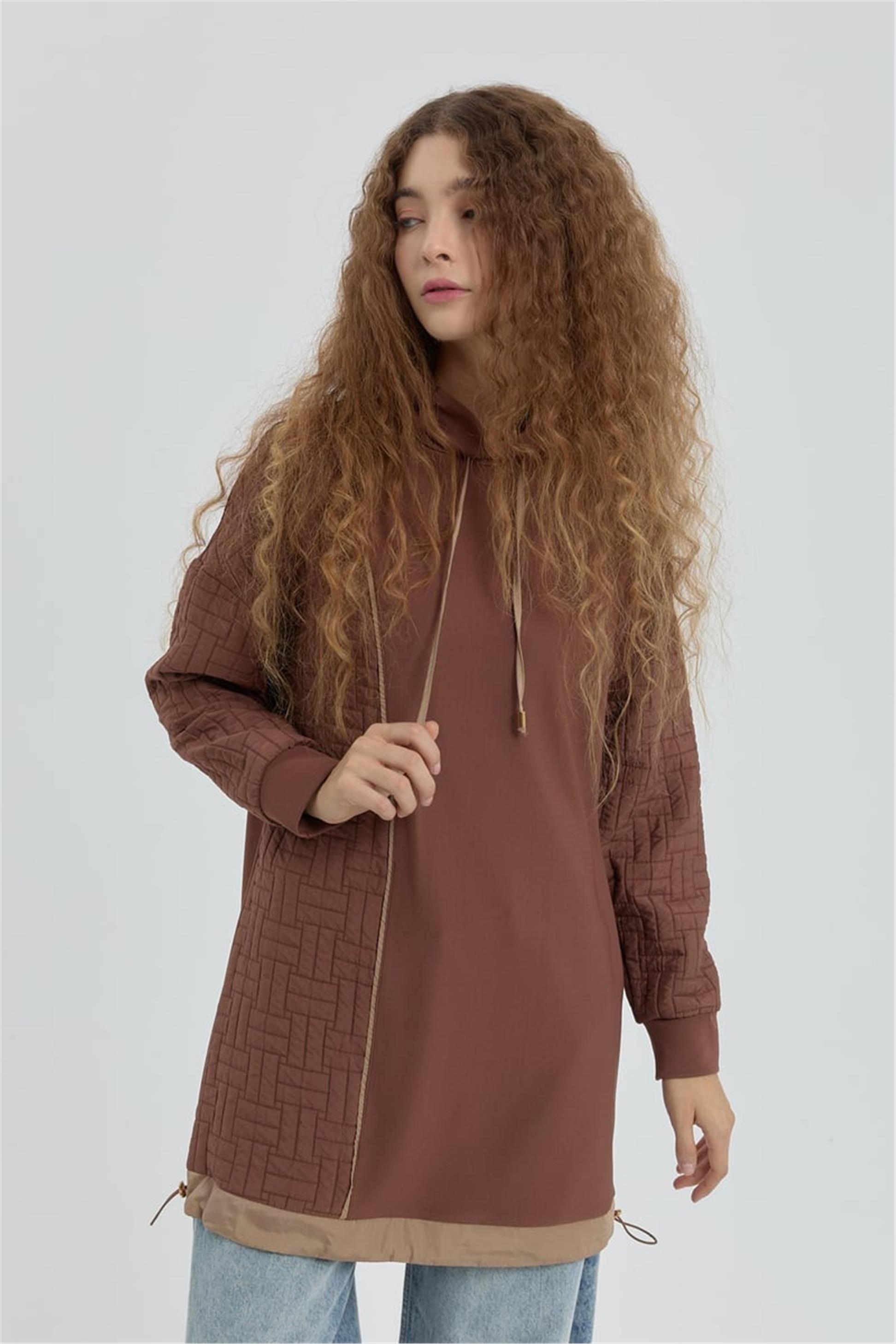 İnce Kapitone Garnili Sweatshırt Kahve