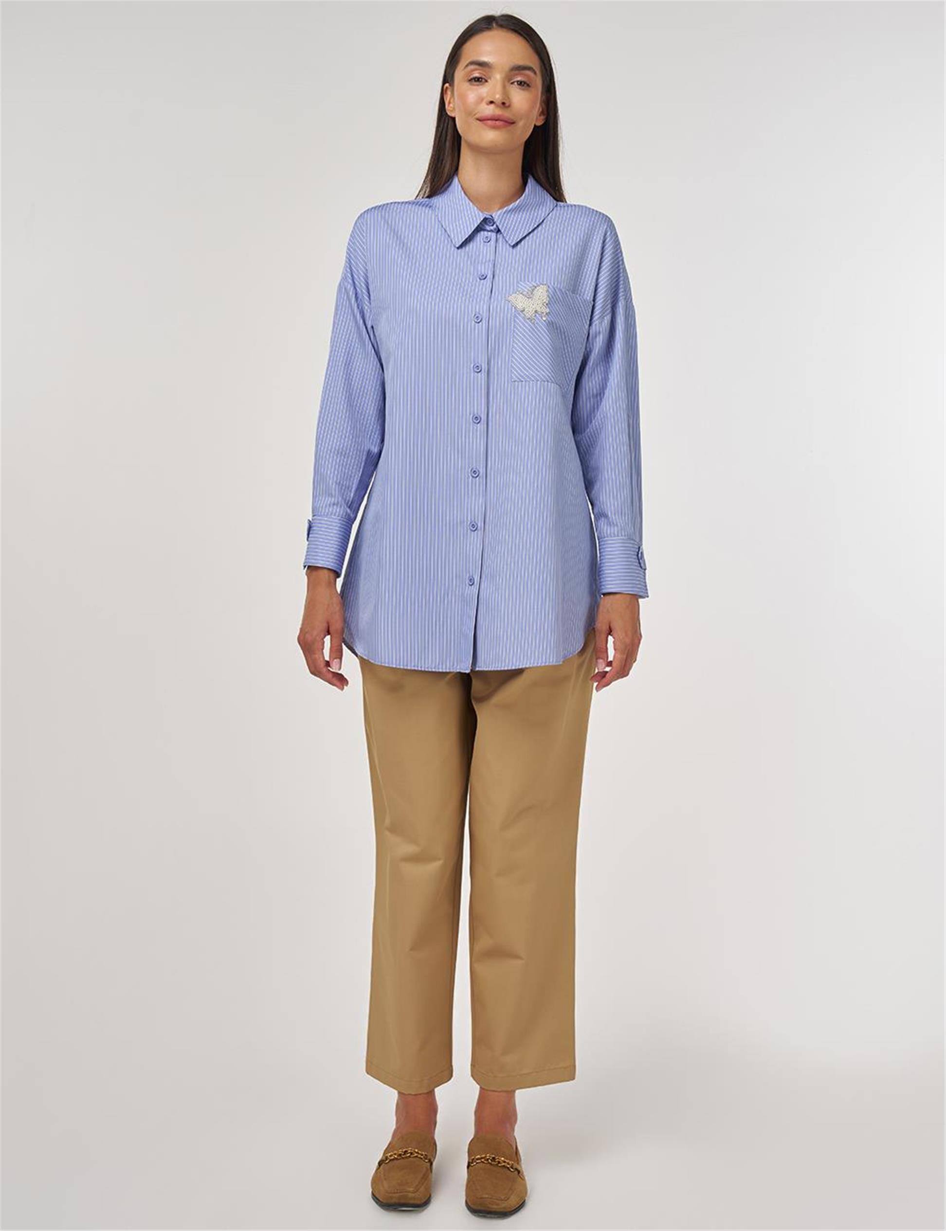 İnci Detaylı Pamuklu Bluz Havacı Mavi