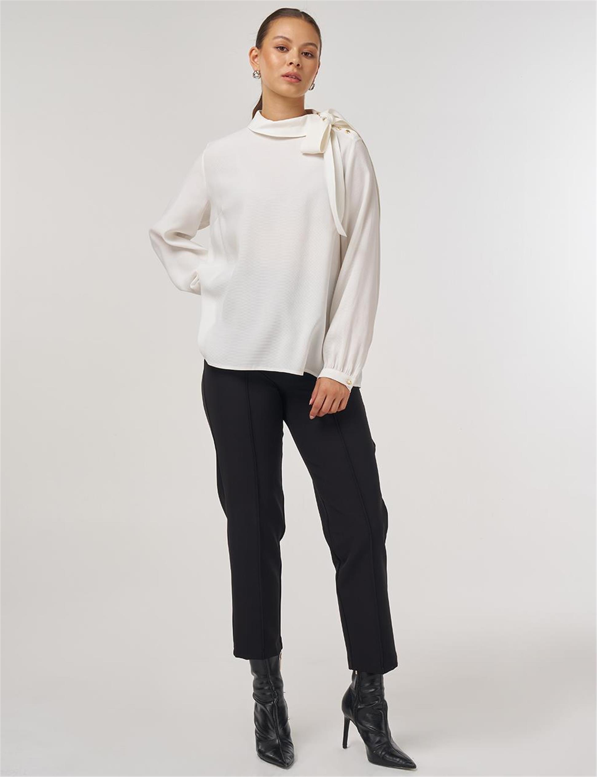 Yaka Detaylı Rayon Bluz Optik Beyaz