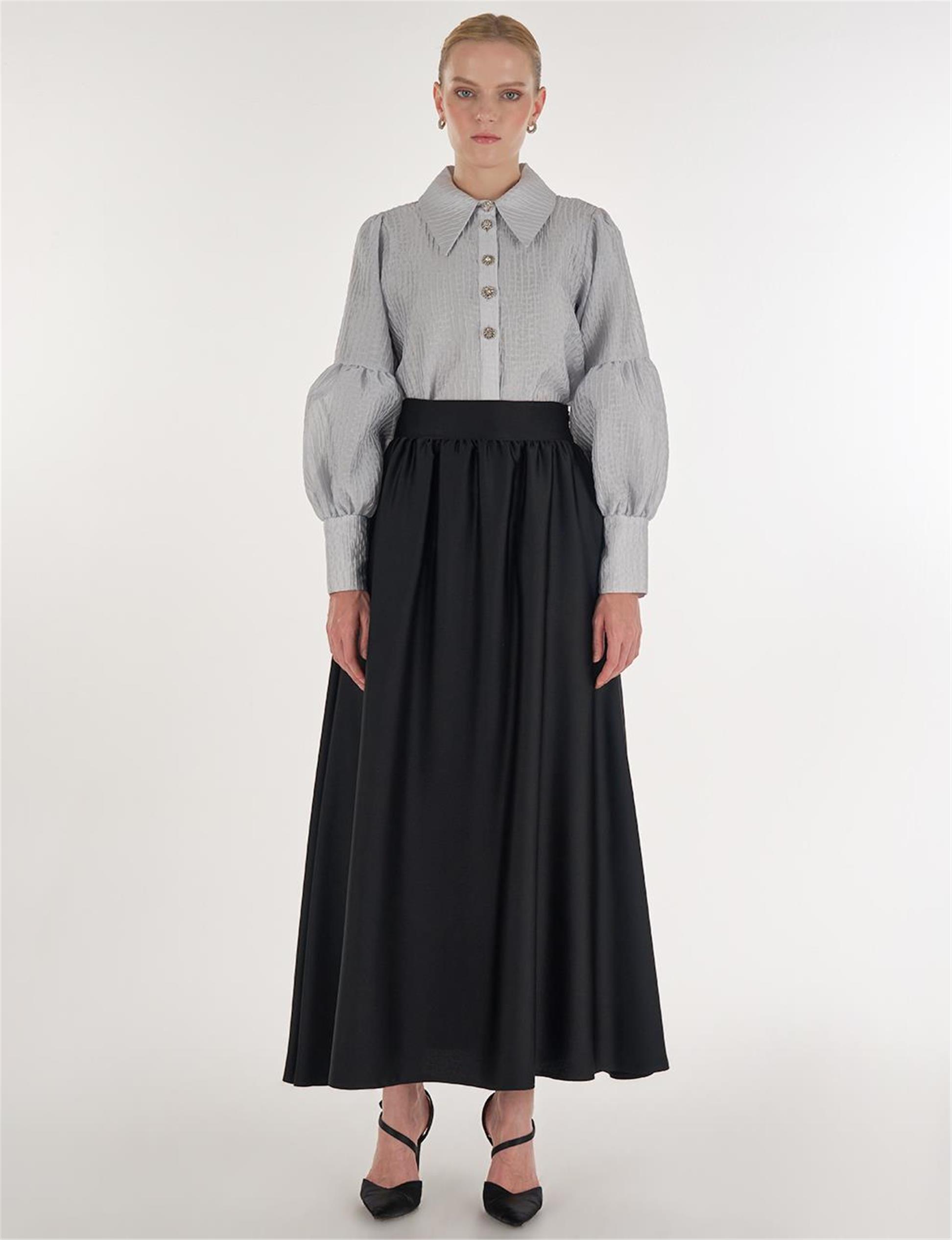 Yüksek bel Yanlardan cepli Astarlı Evaze kesim Kayra Yüksek Bel Saten Etek, şıklığı ve zarafeti bir araya getirmektedir. Vücuda oturan yapısıyla şıklığı ön plana çıkaran eteği; özel gün ya da davet stillerinde tercih edebilirsiniz. Bluz, basic gömlek, küpe, çanta ya da aksesuarlar ile ideal bir görünüm elde edebilirsiniz. Ürün Boyu: 100 cm Mankenin Üzerindeki Beden: 38 Manken Boyu: 175 cm Ölçüleri: 81/62/90