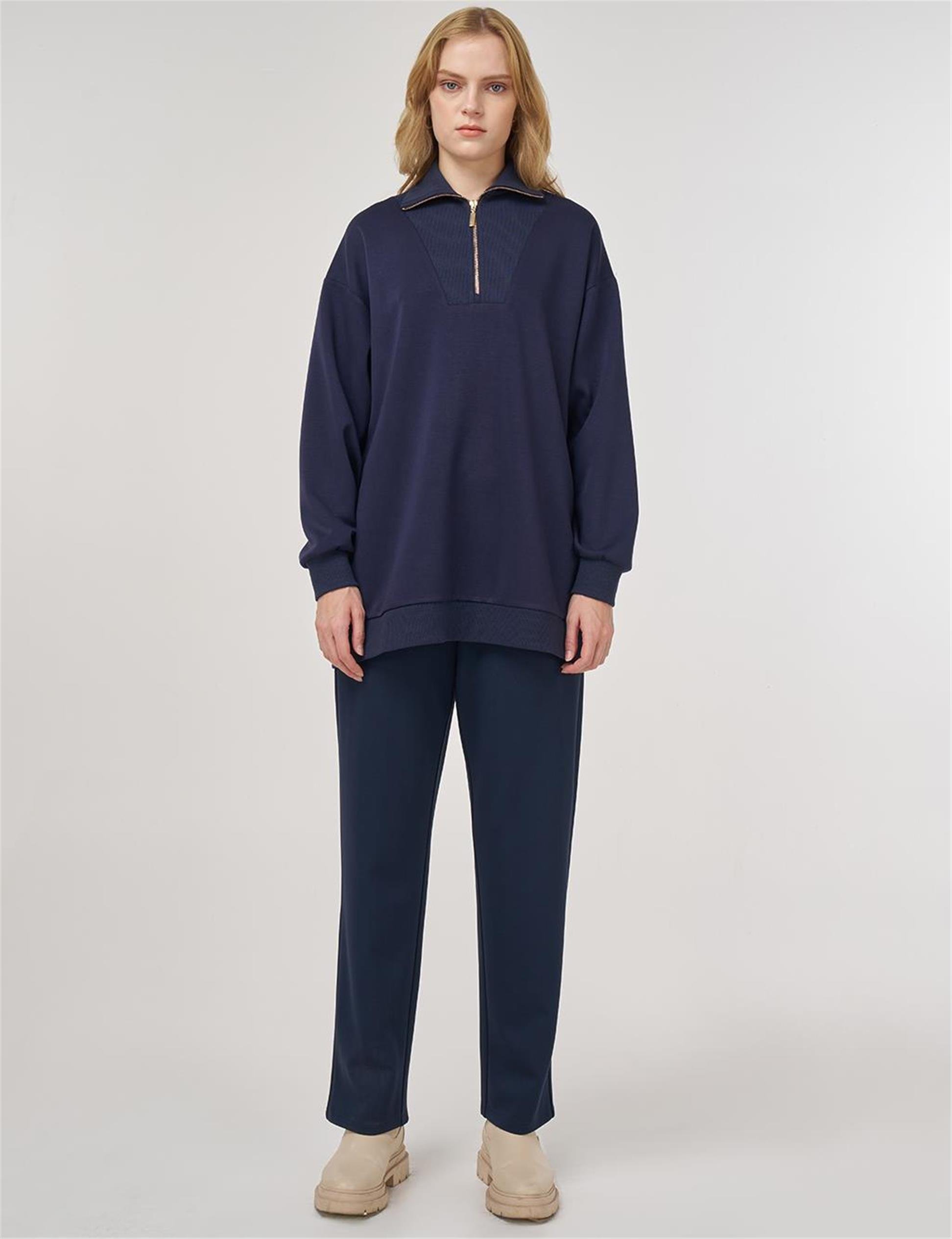 Düşük Omuz Viskon Sweatshirt Lacivert