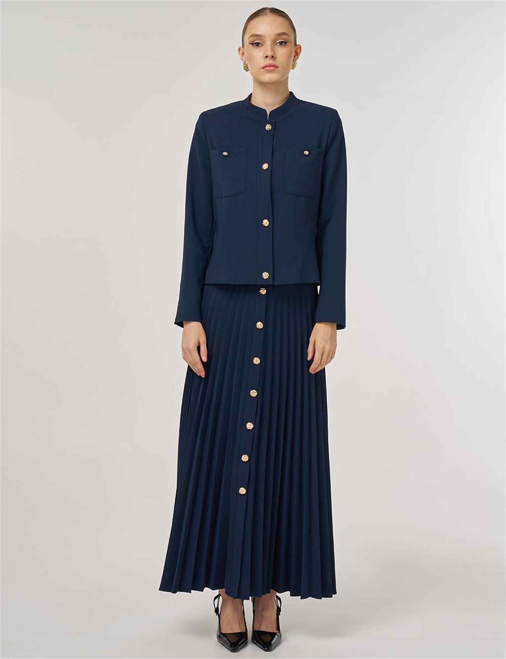 Gold Düğmeli Etekli Takım Koyu Lacivert