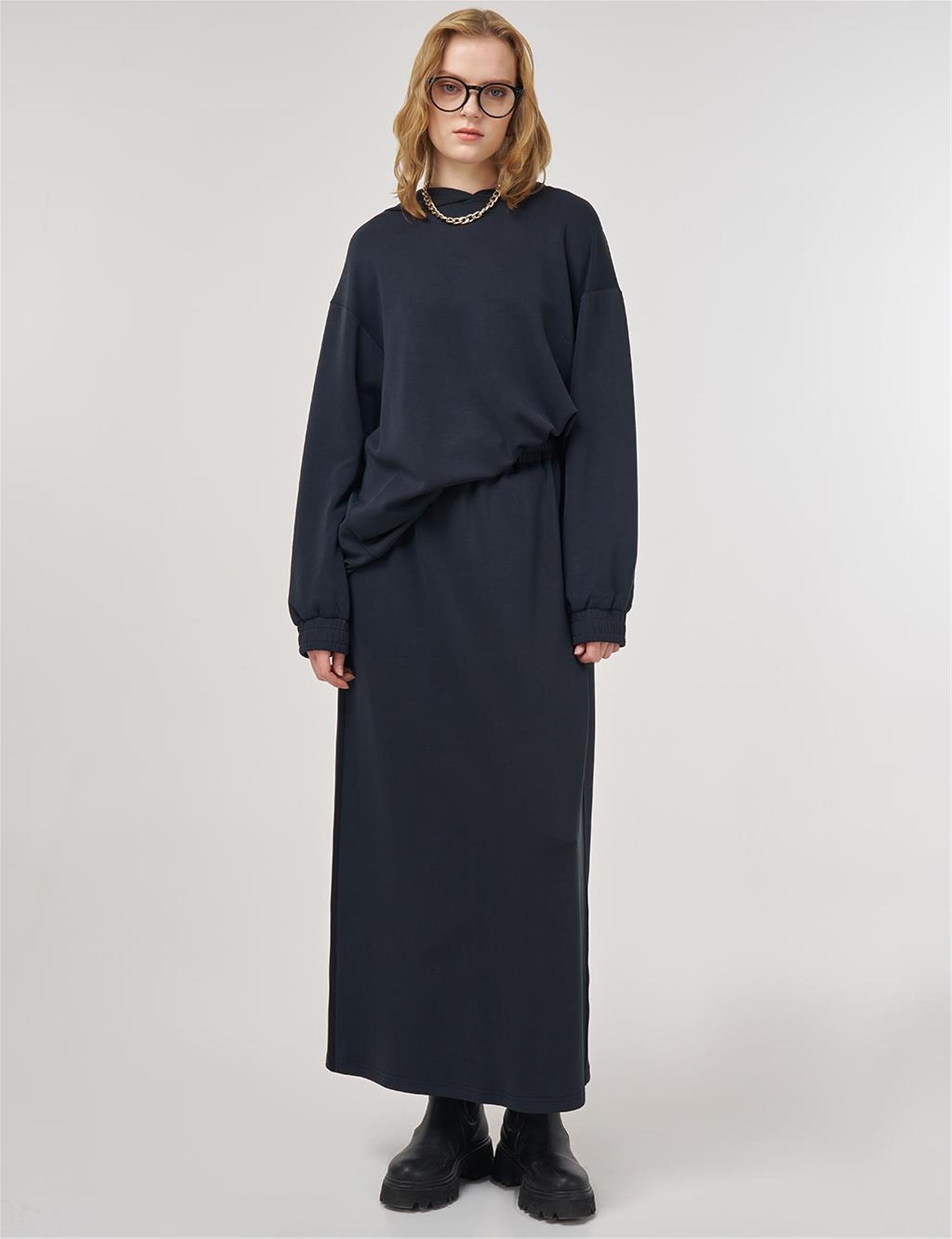Kapüşon Detaylı Etekli İkili Takım Siyah