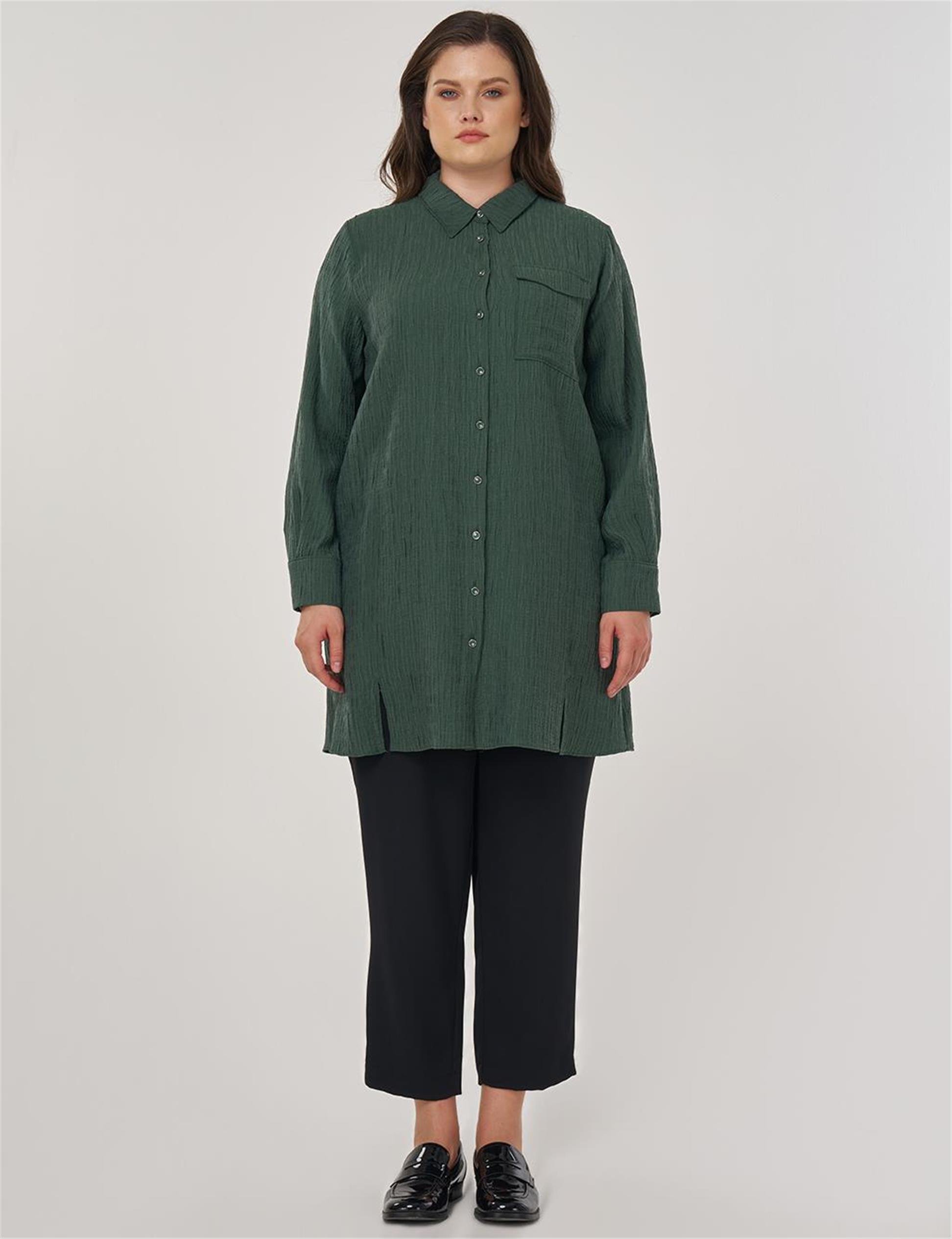 Tek Cepli Lyocell Viskon Tunik Brons Yeşil