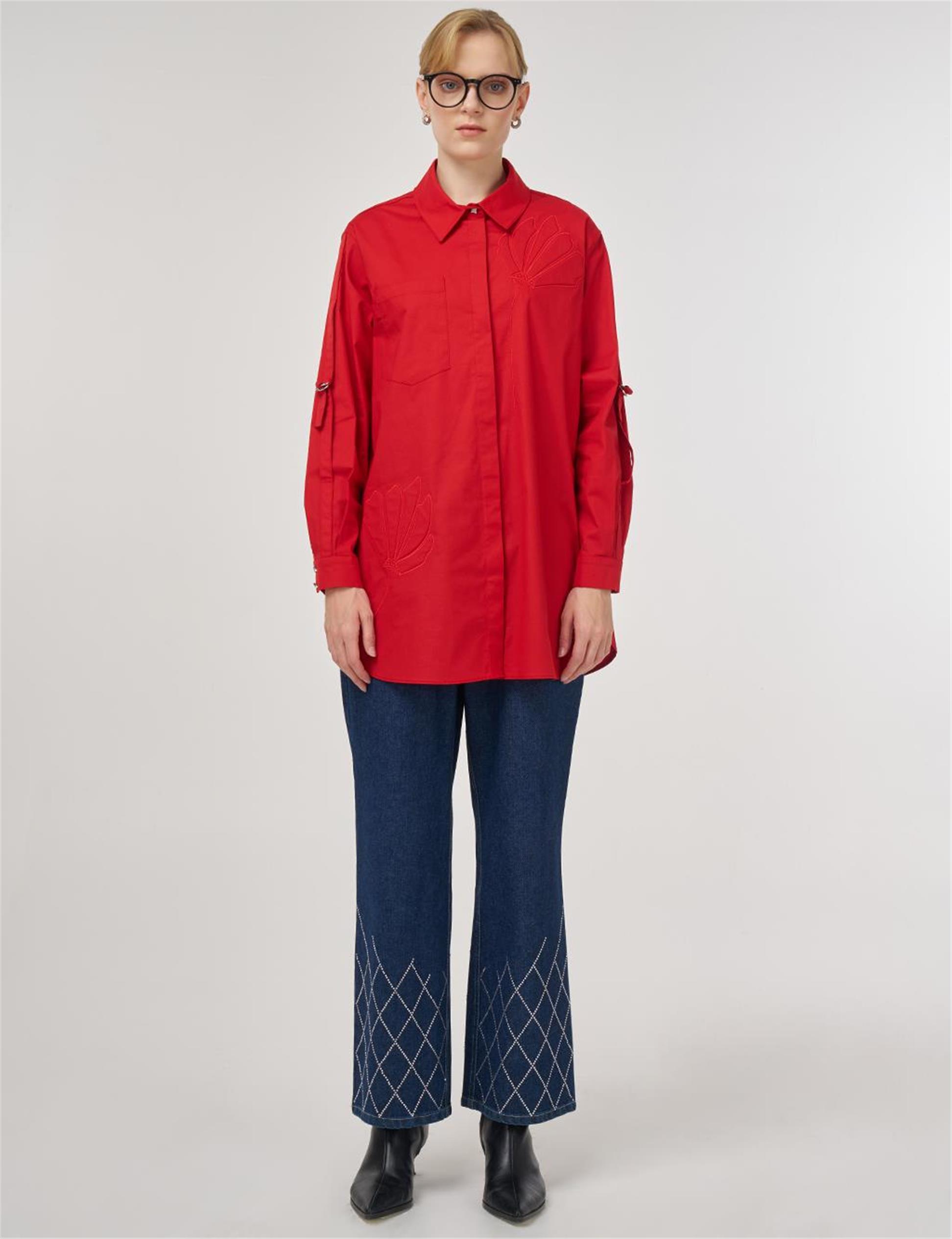 Kabartmalı Pamuklu Tunik Kırmızı