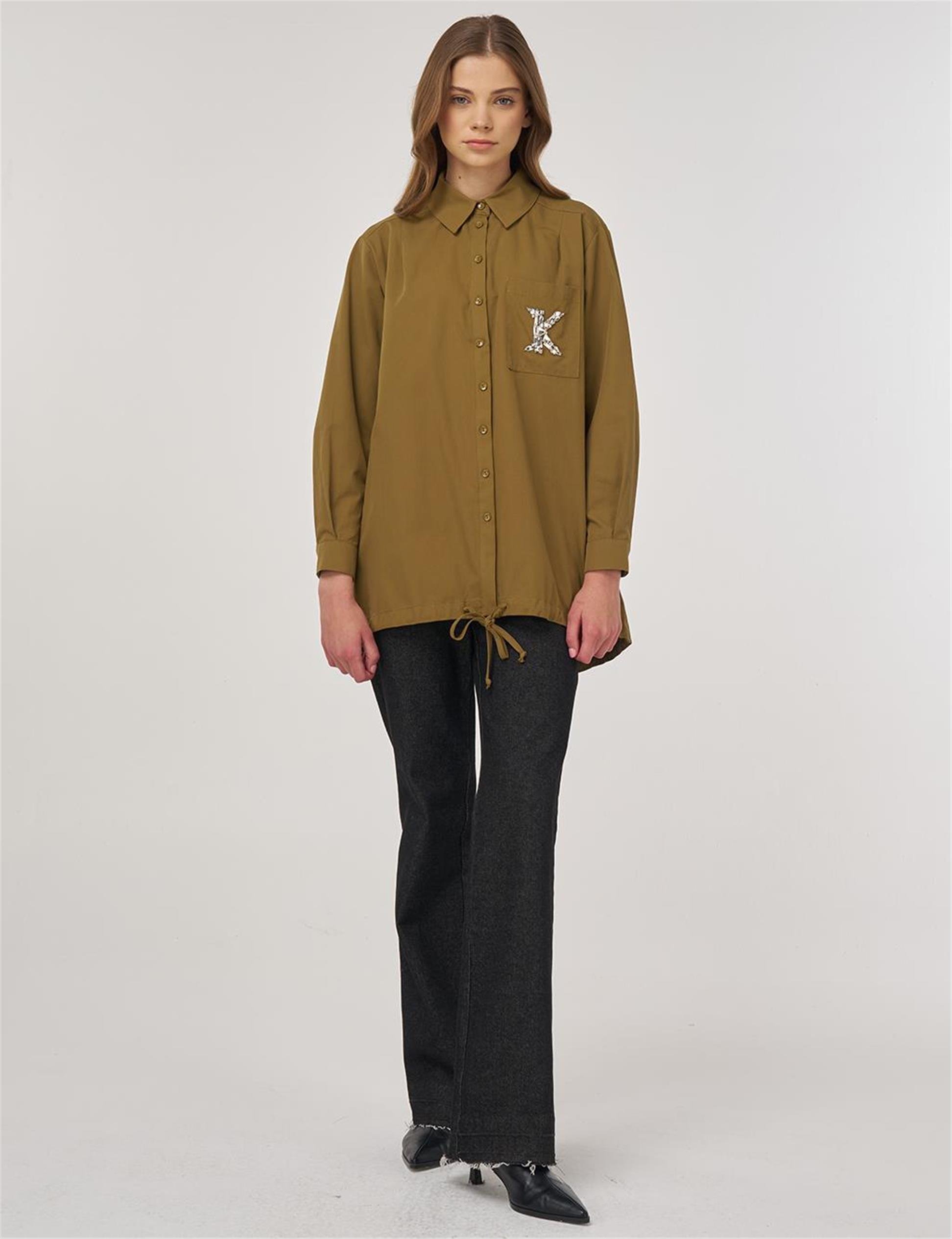 %100 Pamuklu İşlemeli Tunik Koyu Oliv