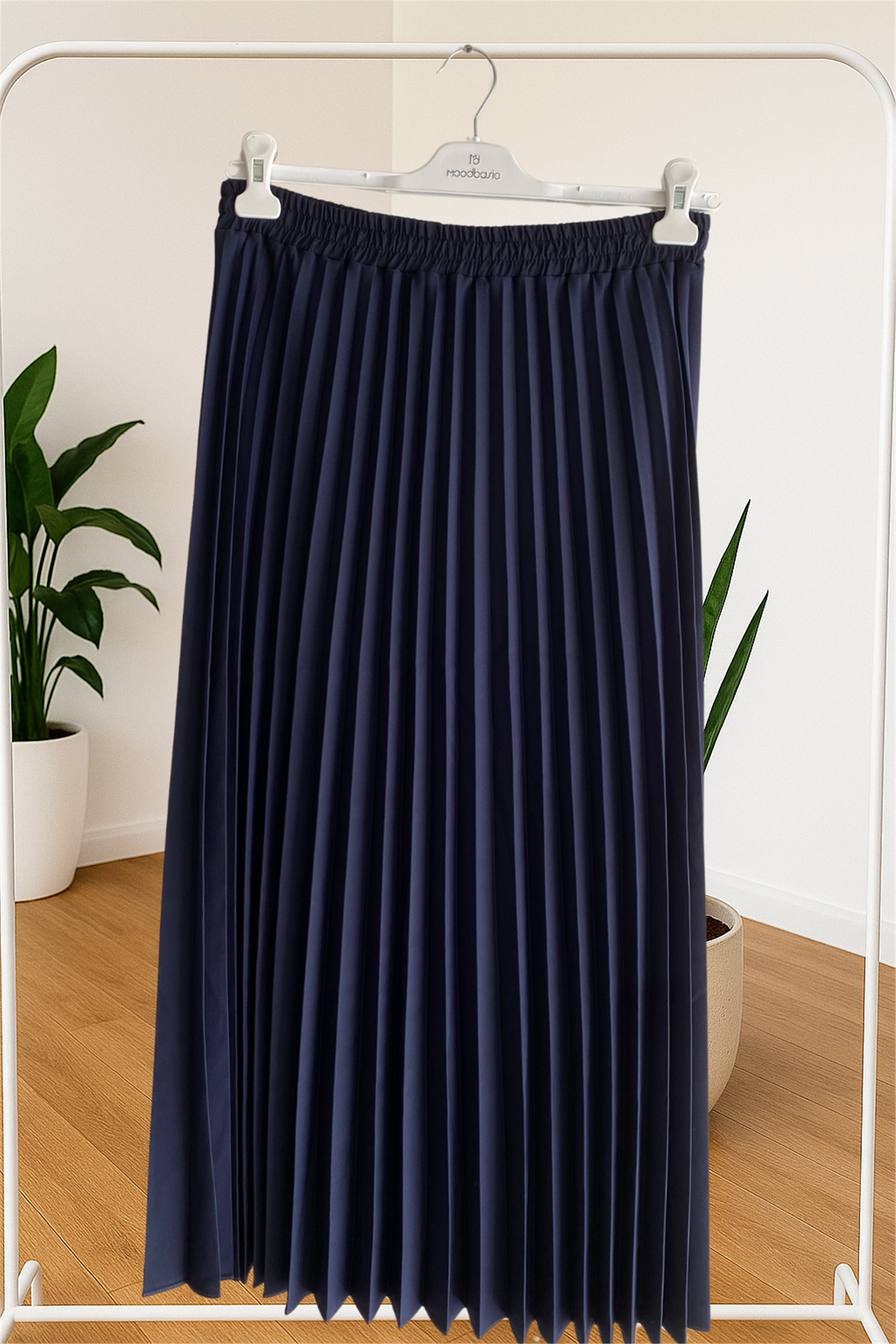 Krep Pliseli Etek Lacivert - 25KMB0932