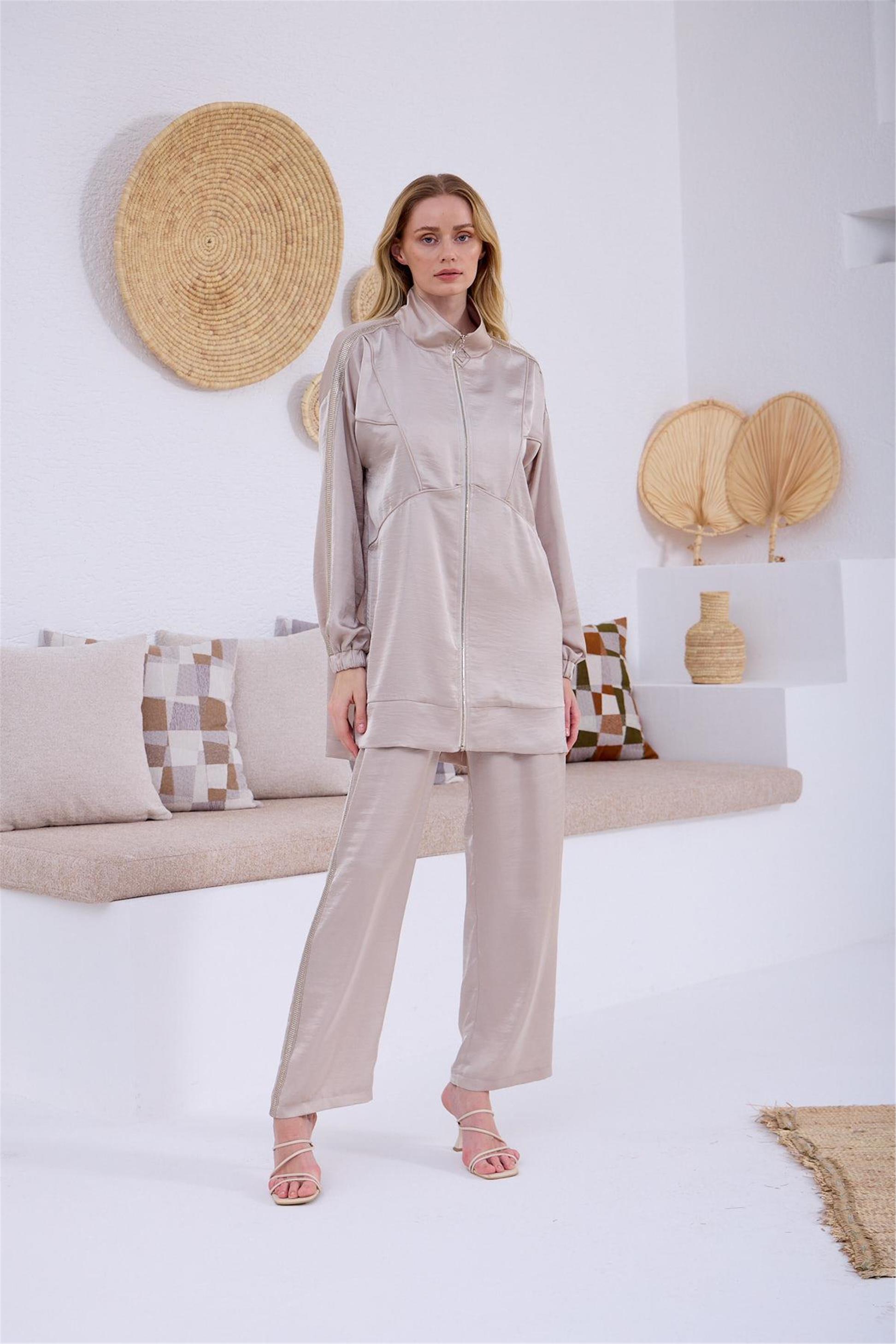 Metal Pul Şeritli İpek Saten Takım Taş - 25KMA2411