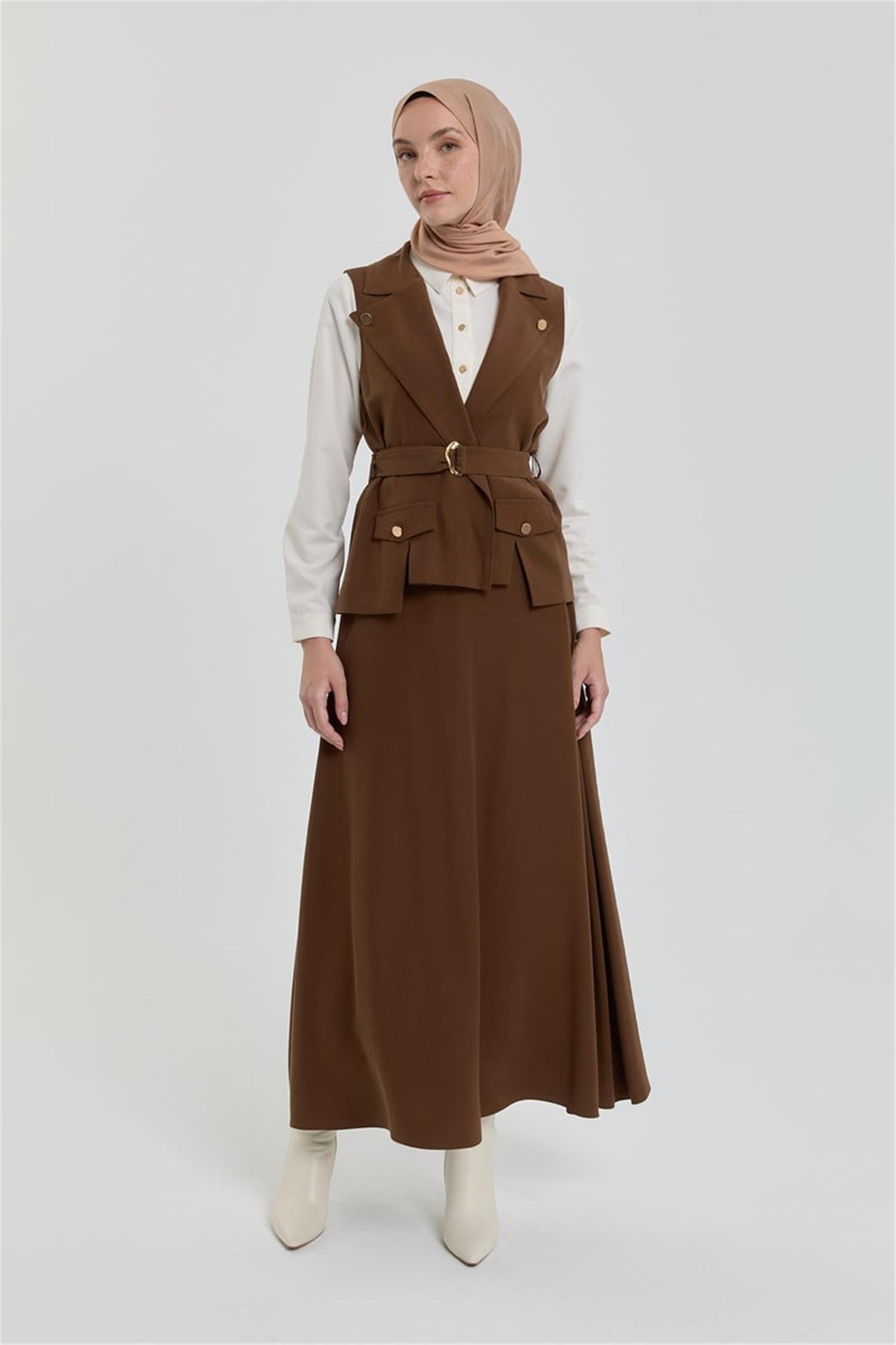 Modal Yelek Etek Takım Açık Kahve