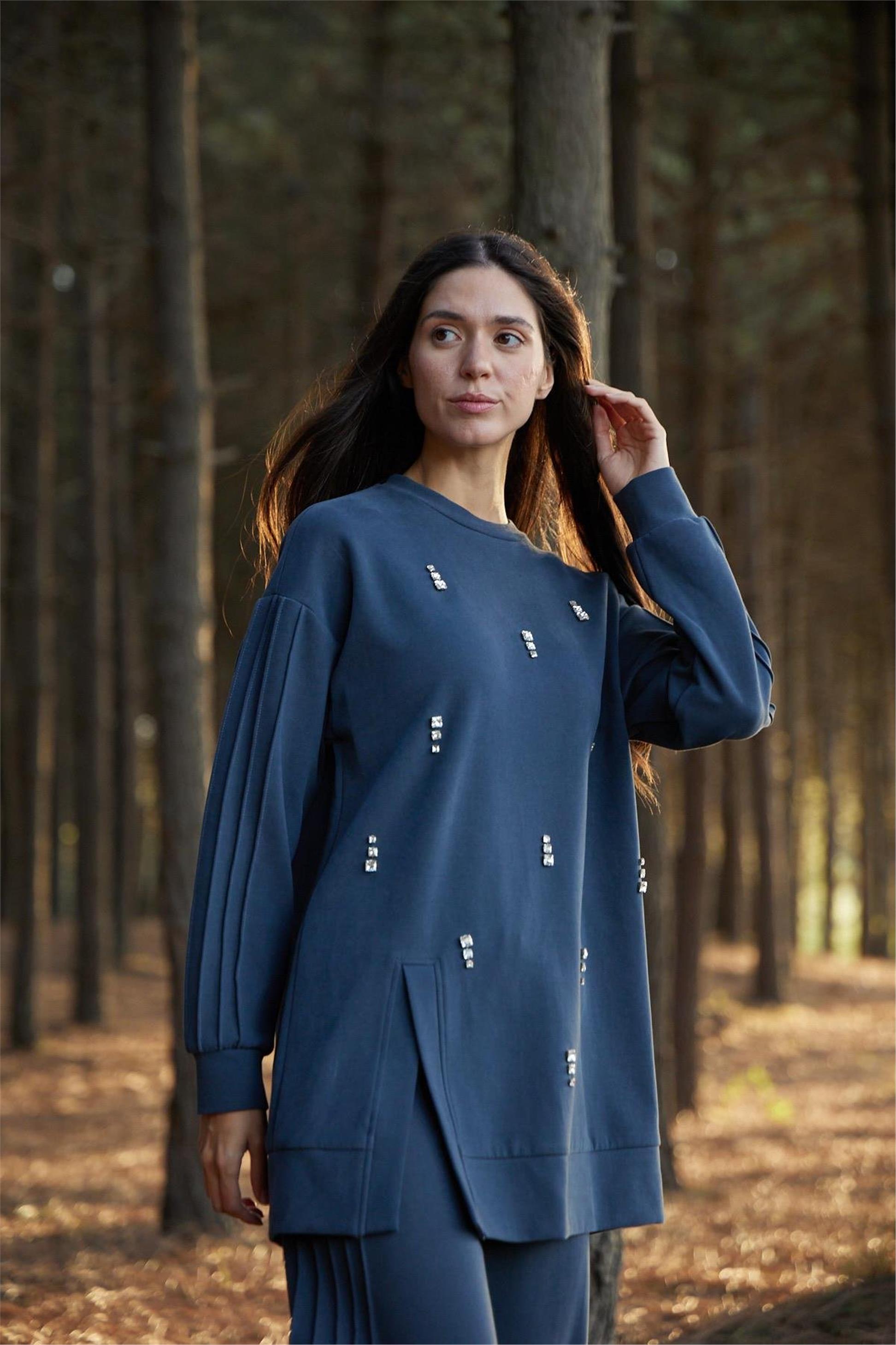 Nervür Detaylı Taşlı Takım Duman - 25KMB24703
