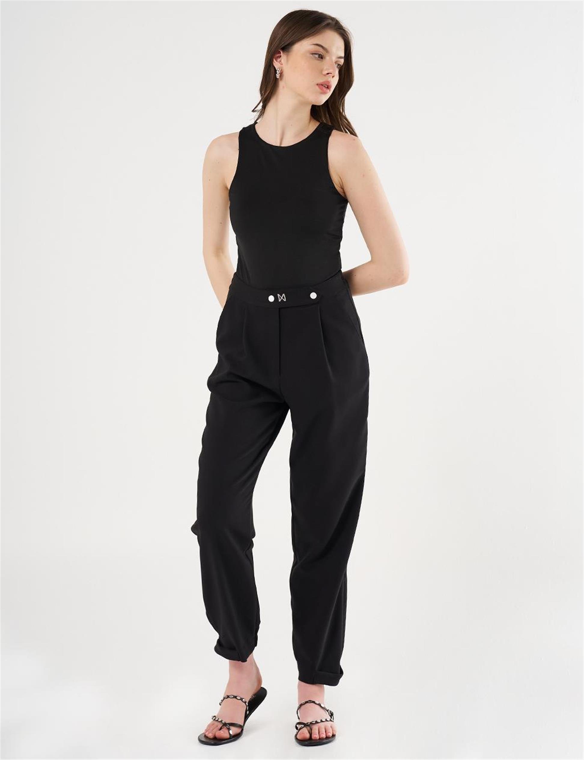 Paçası Lastikli Havuç Kesim Pantolon Siyah