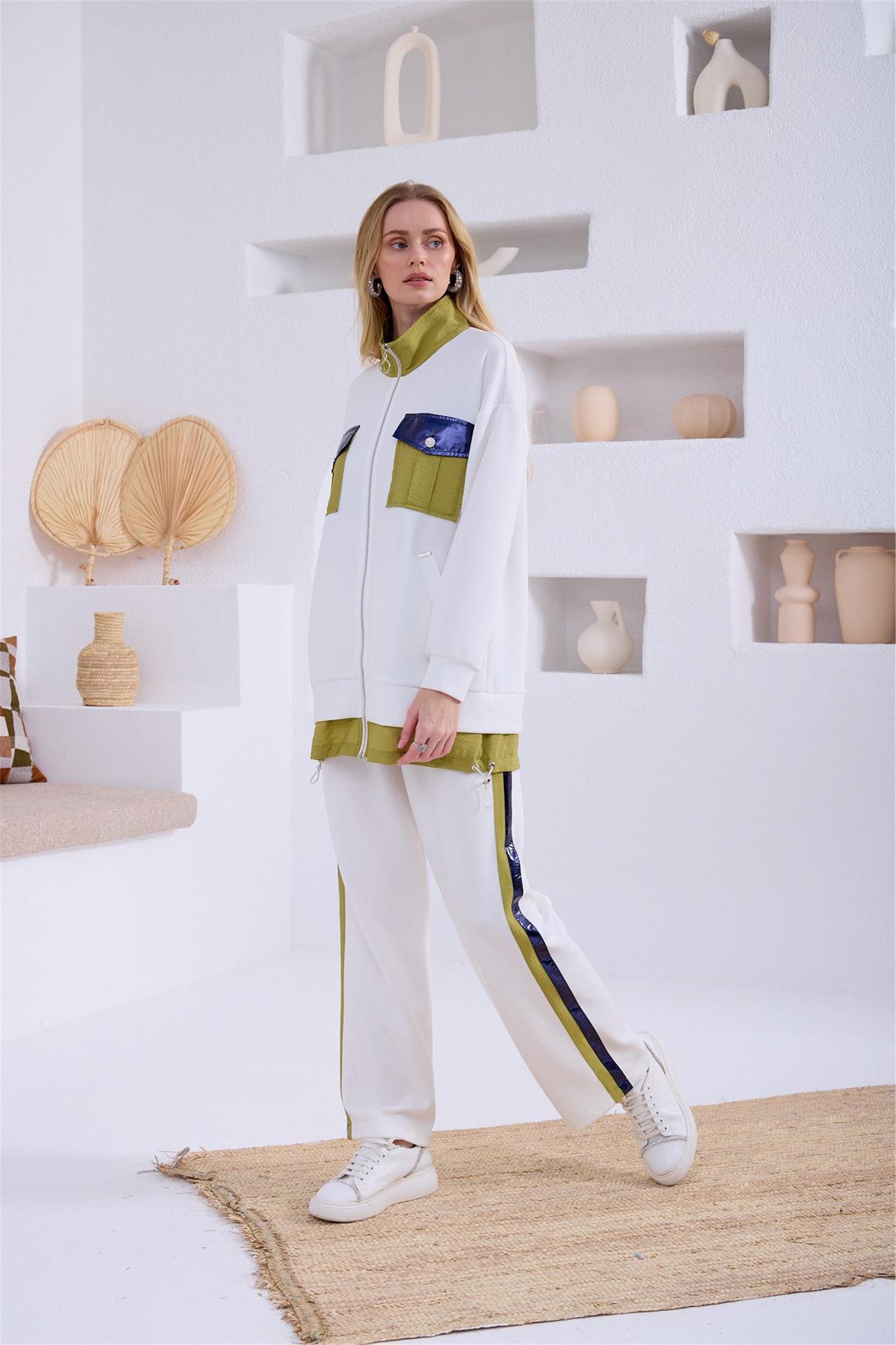Renkli Cep Detaylı Modal Takım Ekru-Oliv - 25KMB24670