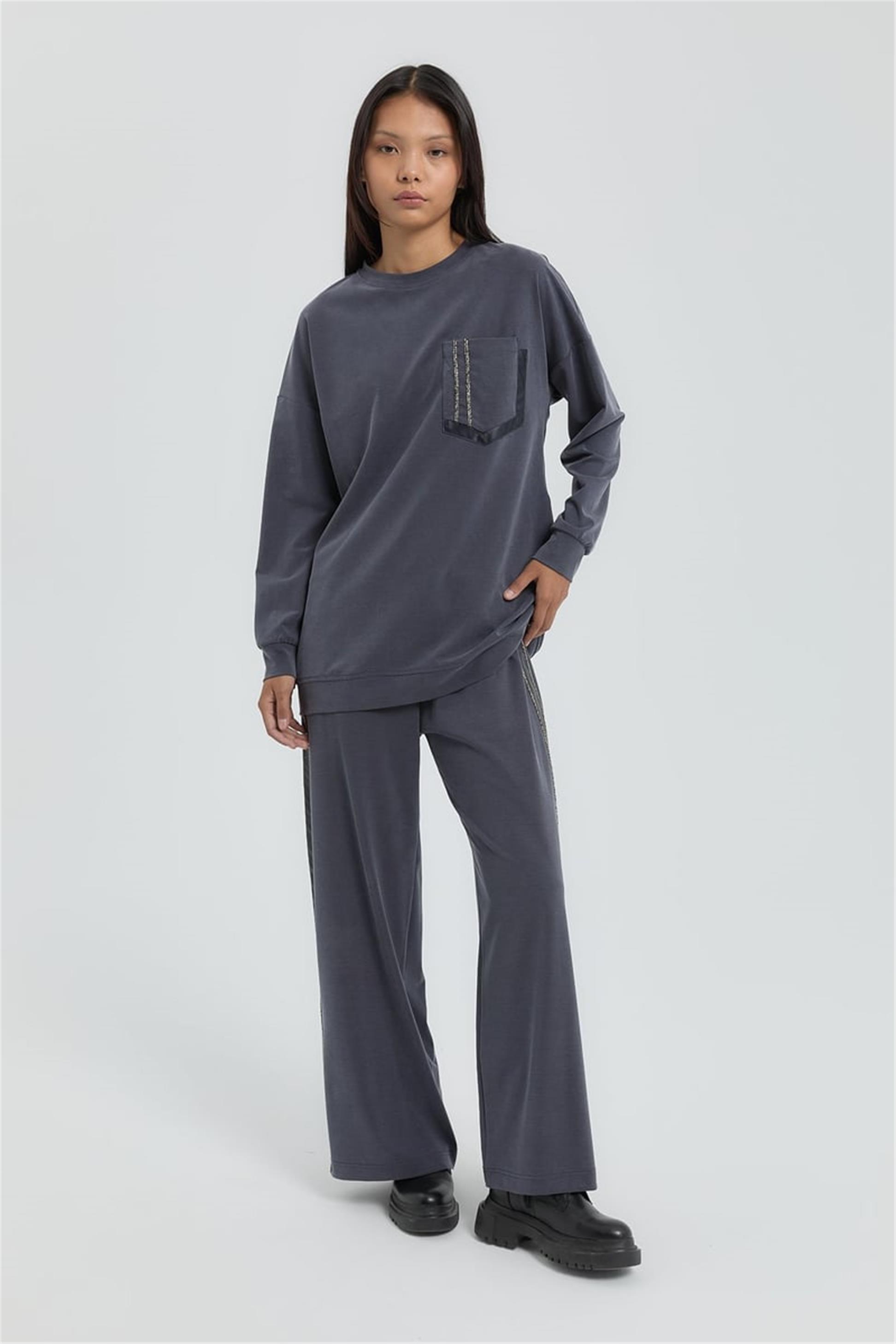 Şerit Detaylı Pantolon Tunik Takım Lacivert